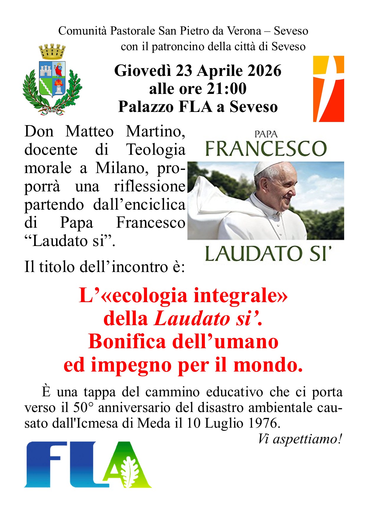 Don Matteo Martino docente di teologia morale a Milano proporrà al pubblico una riflessione partendo dall'enciclica di Papa Francesco "Laudato si'"