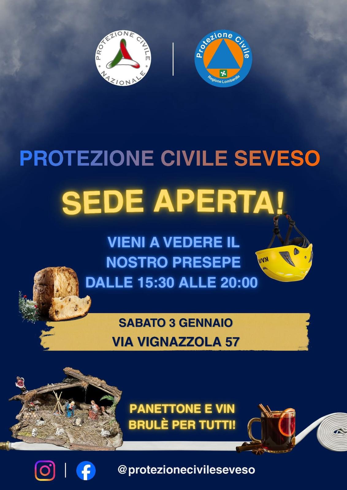 La Protezione Civile di Seveso apre la sua sede (via Vignazzola 57) ai cittadini dalle 15.30 alle 20 di sabato 3 Gennaio per mostrare a tutti il bellissimo presepio.