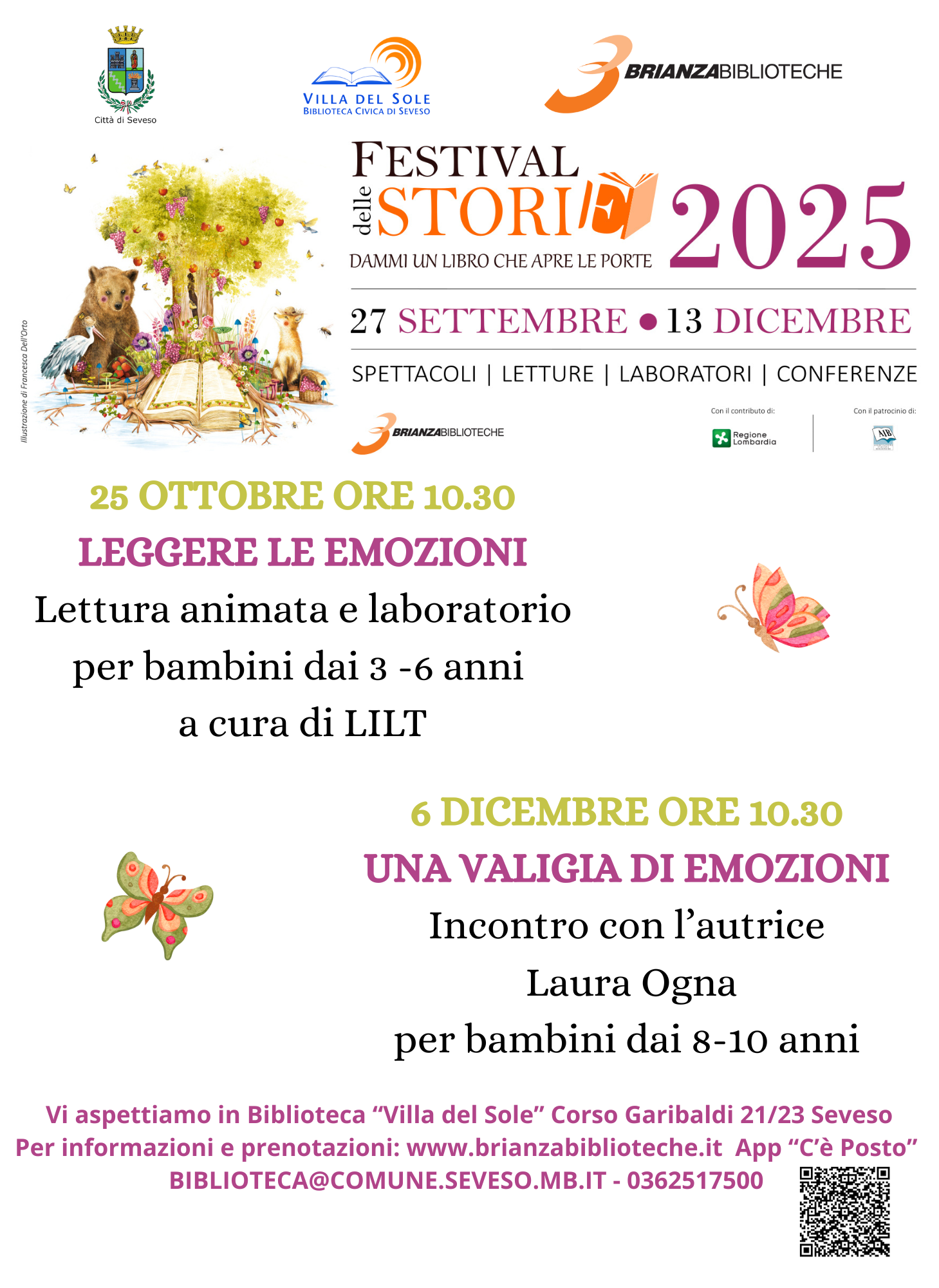 Nell'ambito del Festival delle Storie 2025 organizzato da BrianzaBiblioteche, a Seveso è in programma sabato 25 Ottobre alle 10.30 "Leggere le emozioni", lettura animata con laboratorio per bambini/e dai 3 ai 6 anni a cura della Lilt.